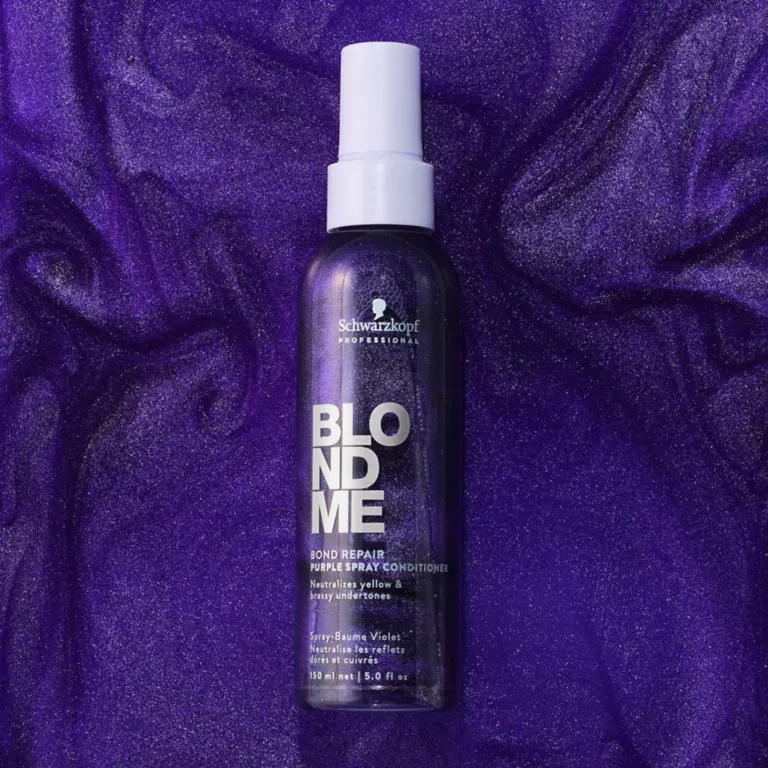 Neutralisant les reflets jaunes et aidant à prévenir les reflets orangés, le Spray-Baume Violet BLONDME Bond Repair avec la TECHNOLOGIE BOND REPAIR démêle instantanément les cheveux et leur donne une belle brillance argentée. La formule, enrichie en huile d’amande et en bleuet, délivre des niveaux ciblés de pigments froids pour maintenir une direction de tons froids pour des cheveux blonds lumineux, sans modifier la couleur. En restaurant l’éclat et la brillance, il renforce les cheveux en créant des liaisons internes, réparant des dommages équivalents à deux services de décoloration après une seule utilisation.