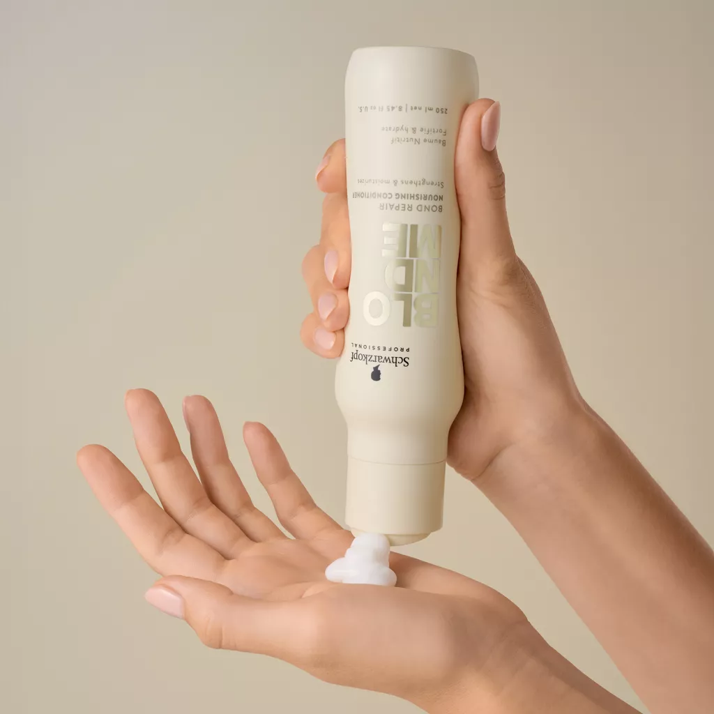 Pour un résultat optimal, utilisez après le Shampoing BlondMe Nutritive et le Masque Bondfinity.