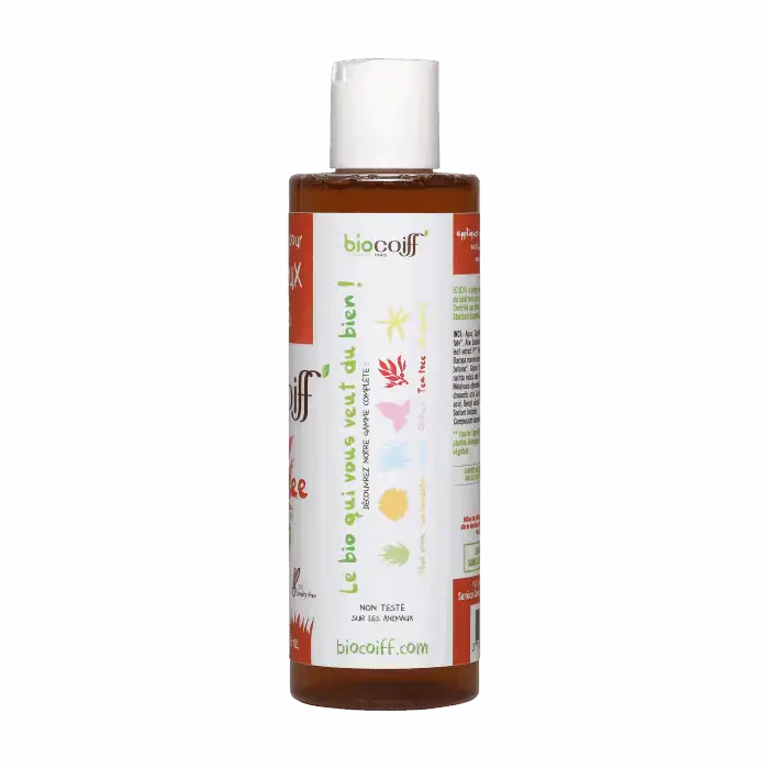 est spécialement formulé pour purifier, assainir et rééquilibrer le cuir chevelu, tout en respectant la fibre capillaire. Enrichi en huile essentielle de tea tree, connue pour ses propriétés antibactériennes et antifongiques, il est idéal pour les cuirs chevelus gras, sujets aux pellicules ou aux démangeaisons. Sa base lavante douce et bio nettoie efficacement sans agresser, laissant les cheveux frais, légers et parfaitement propres. Un allié naturel pour retrouver un cuir chevelu sain et des cheveux éclatants.
